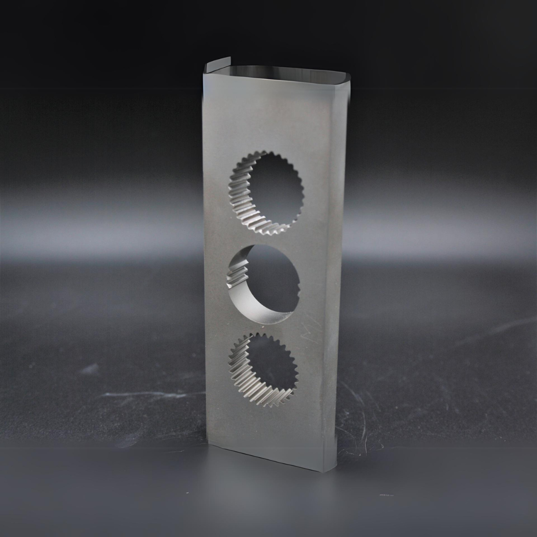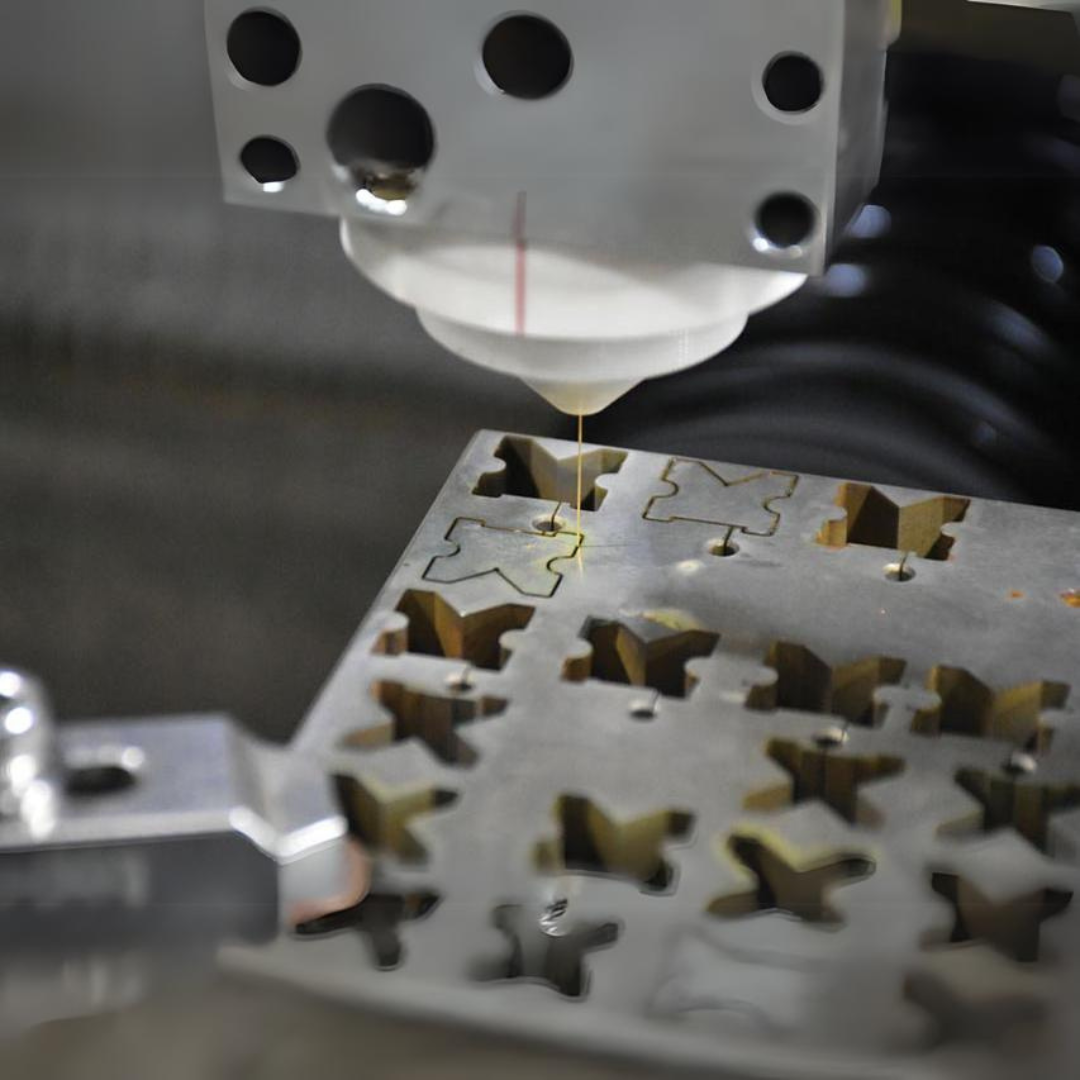 O corte do fio permite-nos obter uma precisão muito elevada (+/-0,005mm) na concepção e fabrico de peças metálicas, bem como um bom acabamento superficial. Além disso, graças às nossas máquinas de eletroerosão e à sua precisão, podemos produzir formas especiais em aços muito duros.